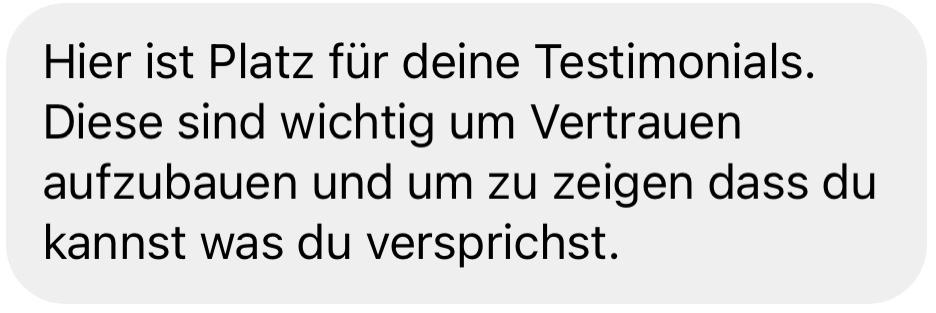Mach hier die Transormation klar. Wo Stand dein Testimonal vorher, was hat sich verändert, wo steht die Person heute nach deinem Coaching/Kurs.